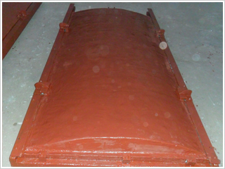 門體一般采用面板與加強肋的結(jié)構(gòu),面板可做平面或拱形。門體一般整體鑄造和機加工,但尺寸較大的可采用分塊組成式。門體上一般采用整體式金屬止水,兼作支承滑塊,金屬止水用同材料制作的沉頭螺釘緊固在門體上,螺釘頭部與止水工作面一起精加工,一些尺寸較大的也可“p”形橡皮止水。